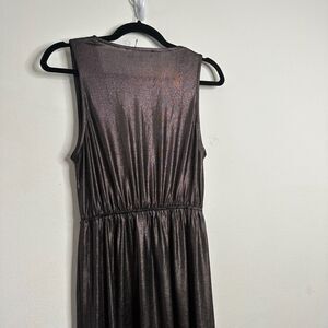 About Us Meredith Plunge Maxi Deep VNeck Sleeveless Shiny Bronze Metallic Small