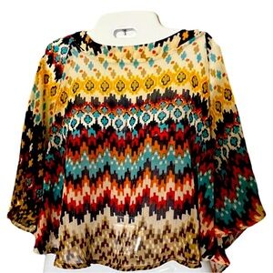 About a Girl Shirt Women’s Brown Geometric Bat Wing Top Blouse Size Large
