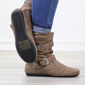 Above Ankle Booties Flat Boots Faux Suede Taupe Round Toe