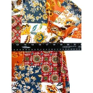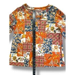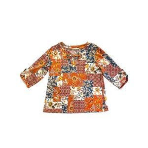 Above & Beyond Women’s M Patchwork Floral 3/4 Sleeve V-Neck Top Grommet Detail