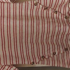 Red and white Striped ¾Sleeve, crisscross Button design on the front.