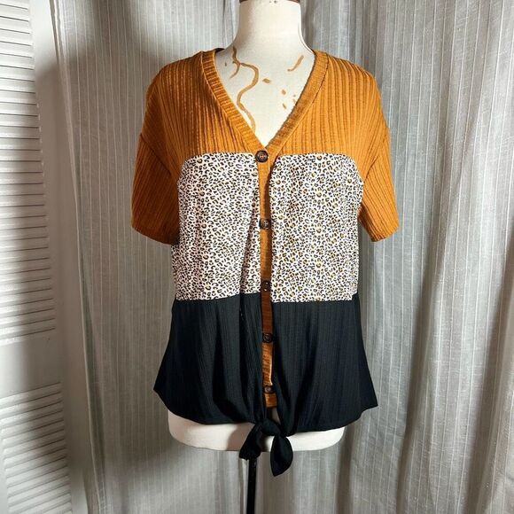 Above and Beyond | Women’s | Blouse | XL | Abstract Colorblock Leopard Boho Chic