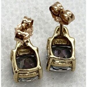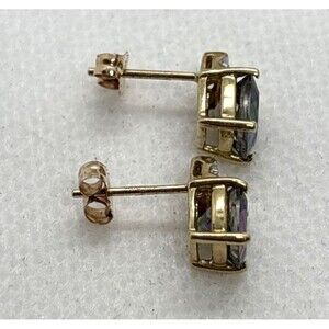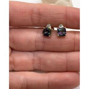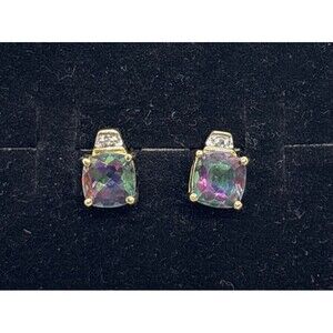 Abraham David Loewenstark ADL 10K Yellow Gold Mystic Topaz Diamond Stud Earrings