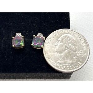Stone Type: Cushion cut mystic topaz - measures 6mm wide with small diamond accent.