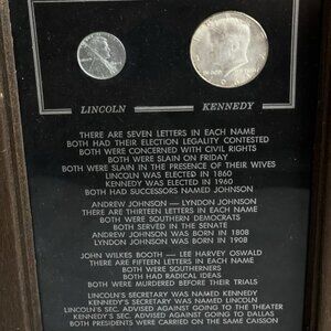 Abraham Lincoln John F Kennedy Coincidence Coin Set Wood Frame Collectible 6"x8"
