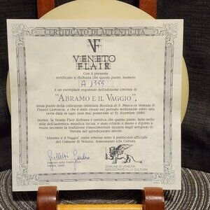 This is a beautiful Mosaic style collectors plate made in the 80's Veneto Flair. These style collector's plates are beautiful artworks with so much detail they are truly amazing. They are hand painted and have gold rim and lettering on back. Almost all the literature with the plate is in Italian along with the back Identification plaque. These were limited edition numbered runs of these designs. They all depict religious scenes or icons and I only have 4 - Bundle all 4 to get an amazing bundle price offer sent to you. All literature I have from each plate is pictured. as some have more than others. All in original packing / shipping box.