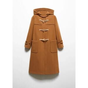 Mango Abrigo Camel Brown Hood Wool-Blend Duffle Coat Women's Small NWT