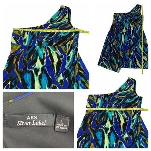 ABS Silver Label One Shoulder Multicolored Aztec Print Mini Sheath Dress Women's Size Large
