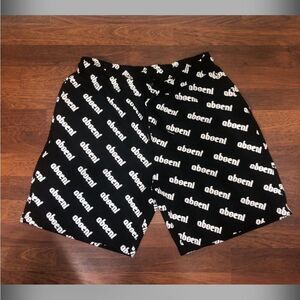 Absent Shorts - Size Large - Black White - Embroidered Shorts - Y2k Drawstring
