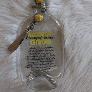 Absolut Citron Vodka bottle , melted flattened bottle with cheese knife