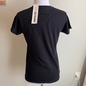 Black short sleeve crewneck fitted tee with bold graphics. 27” shoulder to bottom. 17.25” armpit to armpit. NWT