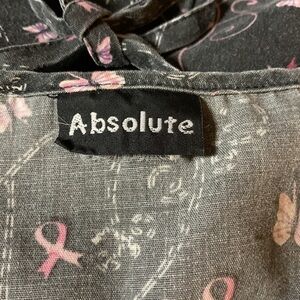 Absolute pink ribbons and butterflies Scrubs top, wrap look. Good condition