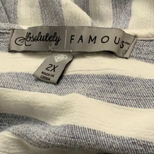 Absolutely FAMOUS white/grey stripe blouse. 2X