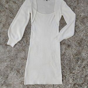 Absolutely Famous Attached Balloon Sleeve Shrug Ribbed Midi Dress Size Medium