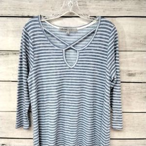 Absolutely Famous Blue White Striped Soft Knit Tunic Sz 1X Coastal Casual