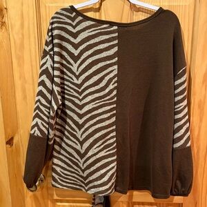 Absolutely Famous Brown Tie Front Animal Print Women Size XL Long Sleeve used