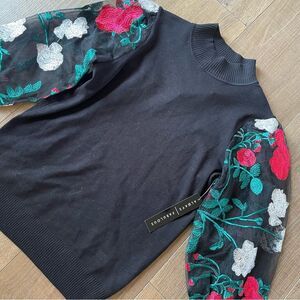 New With Tag Absolutely Famous Embroidered Floral Puff Sleeve Women's Sweater (Size S)