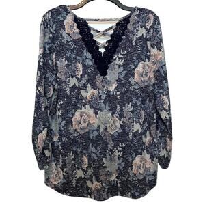 Absolutely Famous Floral Top VNeck Large
