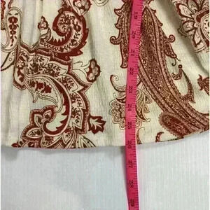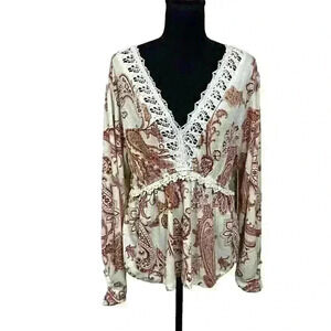 Absolutely Famous NWT Womens XL Red White Paisley Crocheted Blouse Long Sleeve
