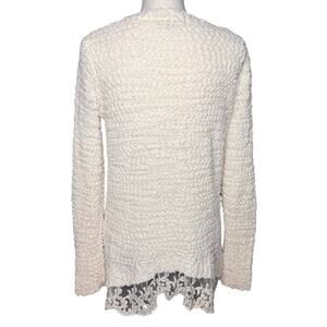 Absolutely Famous Size Medium White Popcorn Chenille Tunic Sweater Lace Hem