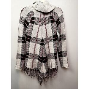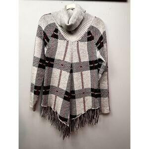 Absolutely Famous Sweater Womens Small Turtleneck Gray Plaid Fringe Pullover