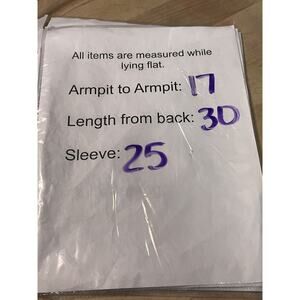 Items are listed by factory tag, but measurements are included. These are approximate measurements and may vary from tag size. Please review these prior to purchasing.