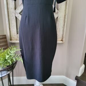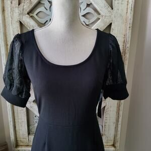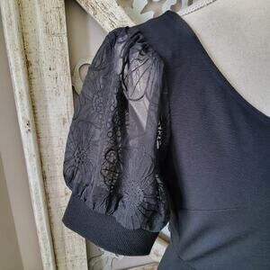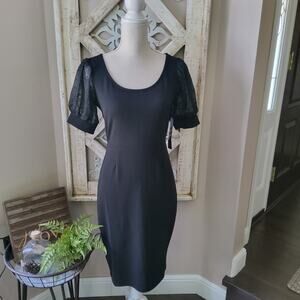 Black illusion short puff floral sleeve midi sheath dress by Absolutely Famous in a size small.
