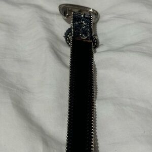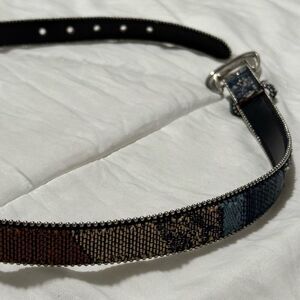 Absolutely Fresh vintage y2k tapestry patchwork style belt in excellent condition with no flaws. Approximately 36” long. Genuine bonded leather with an abstract textile woven print and silver ball chain trim.