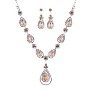 A Yellow Rhinestone Teardrop Necklace Set featuring a dazzling teardrop-shaped yellow stone, surrounded by sparkling rhinestones for extra brilliance. The warm golden hue of the stone gives it a luxurious and elegant feel, making it a perfect accessory for formal occasions or everyday glamour.(Adjustable Clasp)