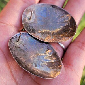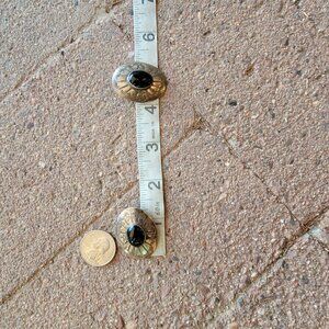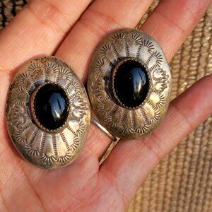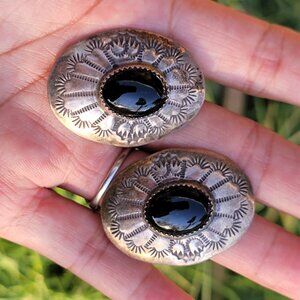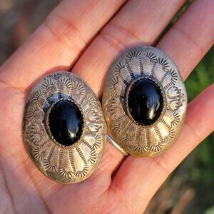 Absolutely stunning vintage Native American handmade onyx stampwork large statement oval earrings