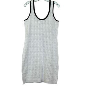 New without tags white sweater tank dress with black trim and buttons. Measures armpit to armpit 17” shoulder to hem 36”.