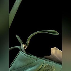 Absolutely adorable Perlina minty green crossbody leather bag…great quality! EUC