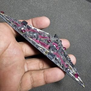 Abstartct Hand Made Artist Signed Artistic Brooch Pin Pink And Gray Triangular shaped see pictures for reference