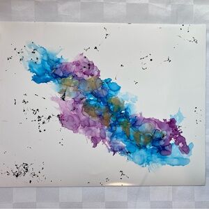 -Style/Features: Titled "Celestial Drift". Colorful abstract alcohol ink fluid art painting with depth, movement with a bit of black webbing and gold highlights to add interest. This is original, one of a kind signed art that comes framed in an acid free art kit (description below.)
