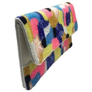 Abstract Art Seed Beaded Crossbody Chain Clutch Bag Handbag NEW