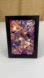 Vibrant abstract art in a sleek black frame. Features splashes of yellow, red, and purple.