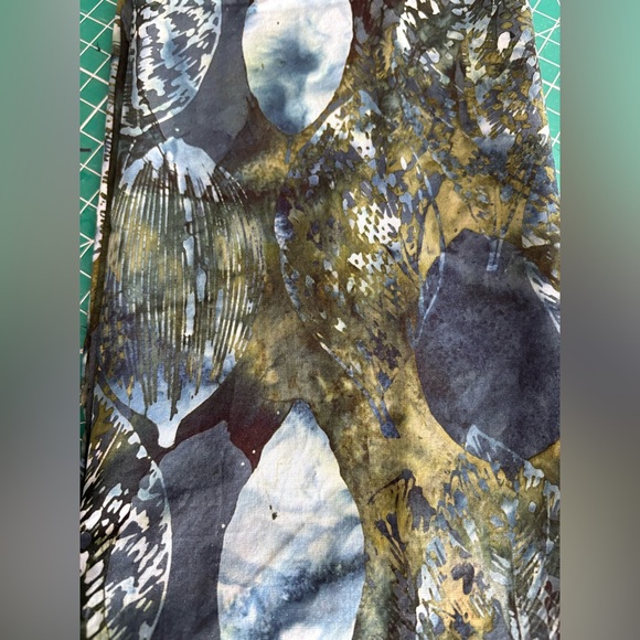 Unique abstract patterned Batik fabric with blue and green tones. Perfect for creative projects. 1 1/8” yard x 52” , excellent condition non smokers home. * note this has a seam approximately 91/2” alone one end.