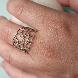 Unique abstract design ring in silver. Perfect for a bold statement.