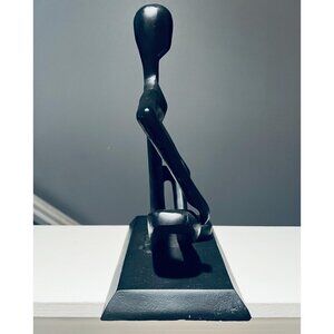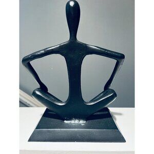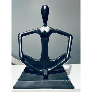 Bring a bold and calming presence to your space with this striking large abstract seated figure sculpture. Crafted from cast metal with a matte black finish, this modernist piece features a stylized human form in a meditative pose. At 11.5 inches tall and 8.5 inches wide, it's a powerful decorative accent ideal for contemporary, minimalist, or zen-inspired interiors.