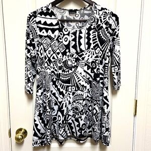 Abstract Black White Babydoll Tunic Top 3/4 Sleeve with Pockets ? Size Medium