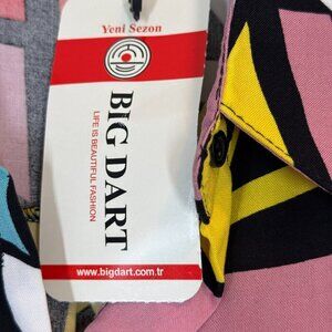 Big Dart Abstract Blouse Top Button Down Blue Purple Pink Colorblock Oversized XL. New with Tags.