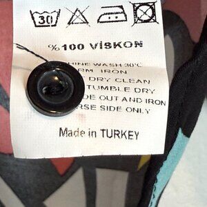 Abstract Blouse Top Button Front Blue Purple Pink Picasso Art Deco Colorful XL