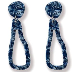 Add a bold pop of color with these marbled navy blue dangle earrings. Featuring a trendy geometric teardrop shape with a matching abstract stud top, these statement earrings are crafted from lightweight resin alloy for all-day comfort. The swirled pattern gives them a modern, artistic vibe — perfect for casual looks, vacation outfits, or dressing up basics.