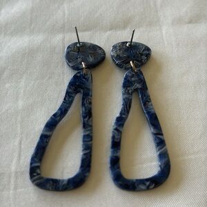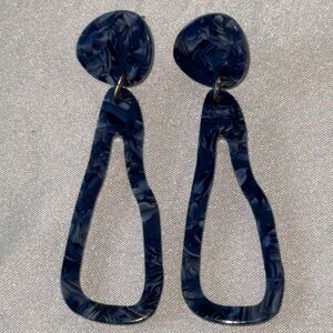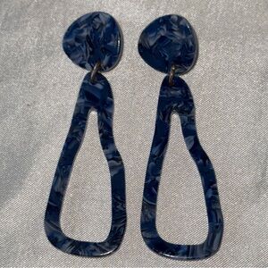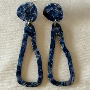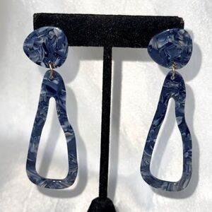 Abstract Blue Geometric Dangle Earrings Marbled Swirl Navy Abstract Dangle 3”