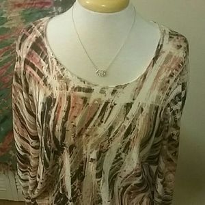 There are no tags in this awesome top, so we figure it fits a Medium loosely. The pattern on this top is to die for!!!