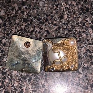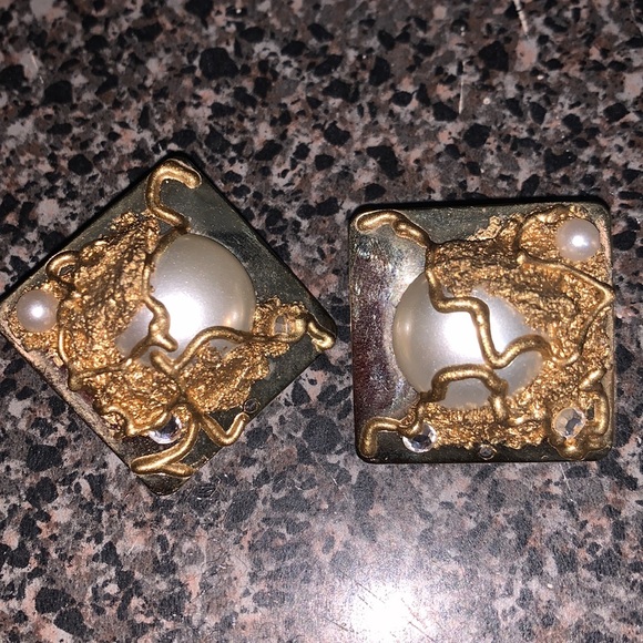 These vintage abstract earrings come equipped with a faux Pearl. These are post back.