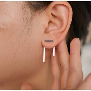 Abstract Geometric 14K White Gold Plated Delicate Simple Bar Design Jewelry Gift