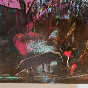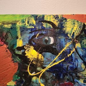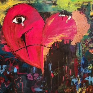 Vibrant and colorful broken heart abstract canvas art featuring bold red and black tones. Perfect for adding a splash of color to any room. There are many things to discover in this piece signed by the artist.
