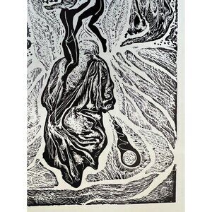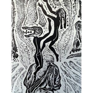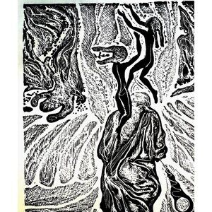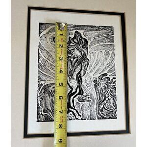 Abstract Ink Drawing Art Photo Print Black White Double Matted 14 x 16"