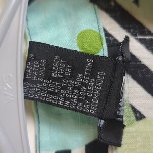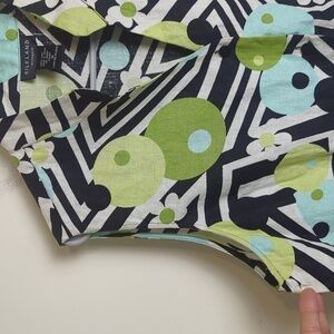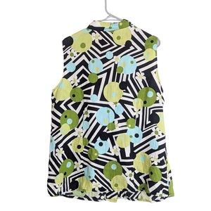 Great Abstract tunic top with fun black and white maze stripes and circles of teal, green,and sage.